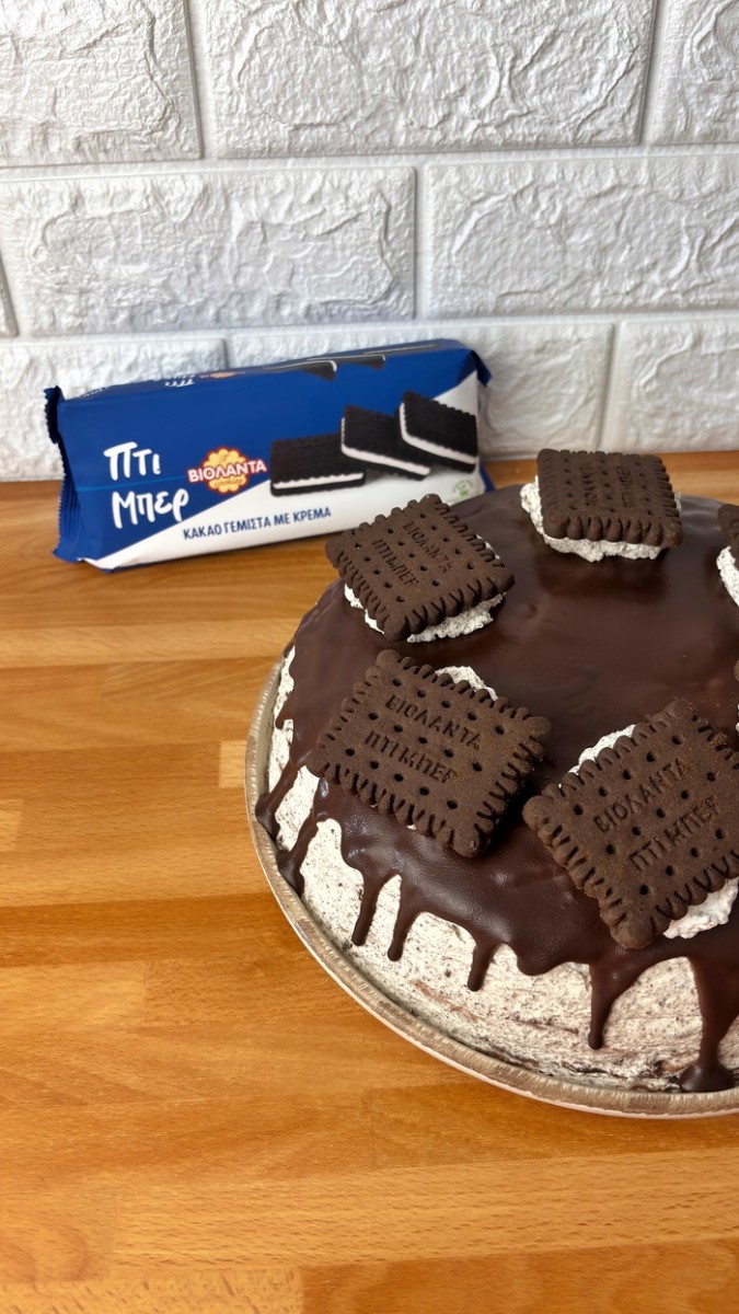 In another bowl, whip the plant-based cream with the powdered sugar using a mixer. Then add the mascarpone and beat until light and fluffy. Crush the cocoa cream-filled biscuits in a blender, add them to the cream mixture, and mix again.