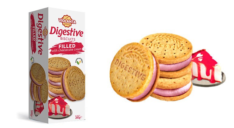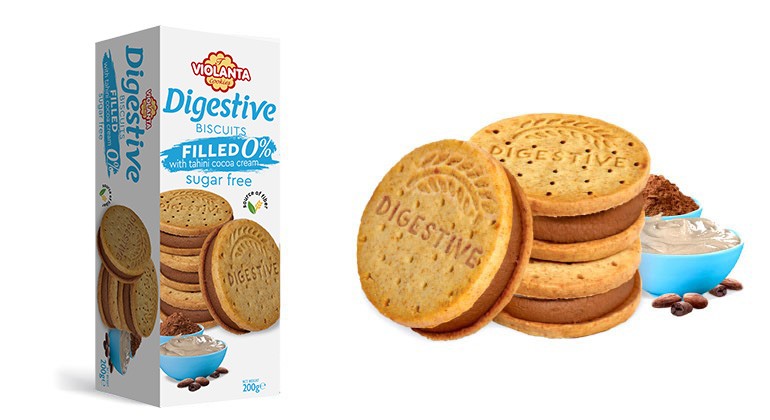Your favorite VIOLANTA Digestive cookies… now also filled with cream! Delicious cookies with wholemeal flour and dark chocolate cream, tahini & cocoa cream (sugar-free) and cheesecake cream! Enjoy them at any time of the day, combining delightful taste with health benefits.