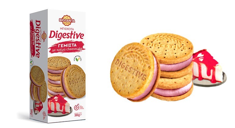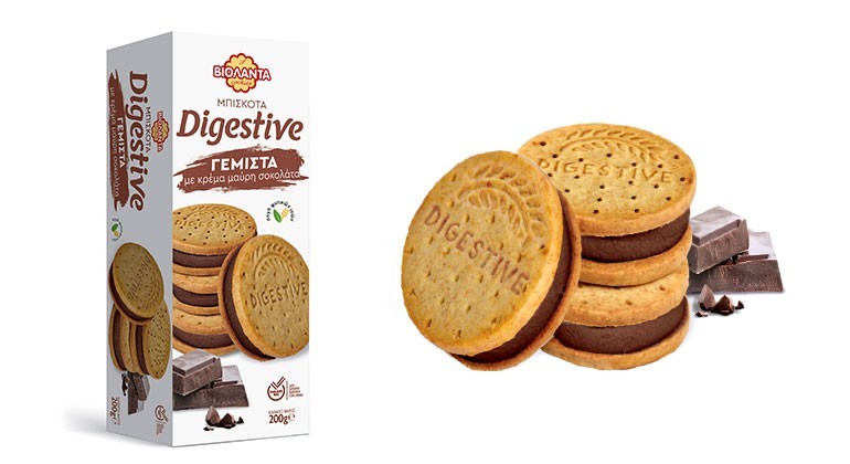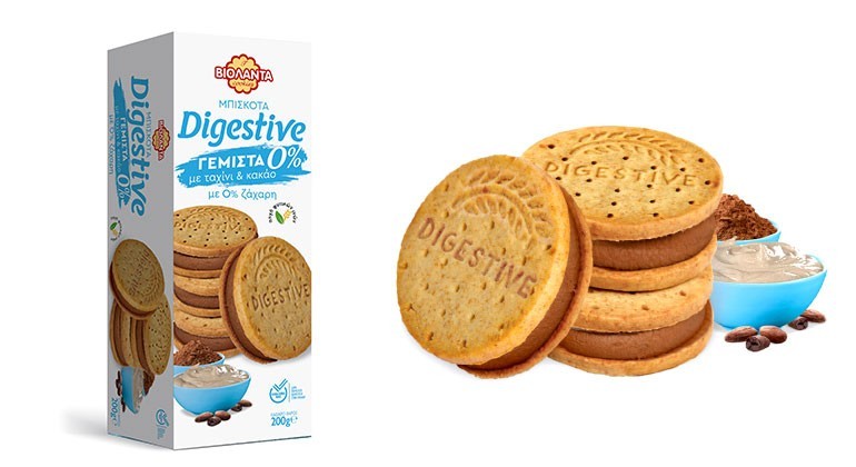 Τα αγαπημένα μπισκότα ΒΙΟΛΑΝΤΑ Digestive… τώρα και γεμιστά! Απολαυστικά μπισκότα με αλεύρι ολικής άλεσης και γέμιση κρέμα μαύρης σοκολάτας, κρέμα ταχίνι & κακάο (0% ζάχαρη) και κρέμα cheesecake! Απολαύστε τα οποιαδήποτε στιγμή της ημέρας, συνδυάζοντας τη γευστική απόλαυση με τα οφέλη για την υγεία σας.