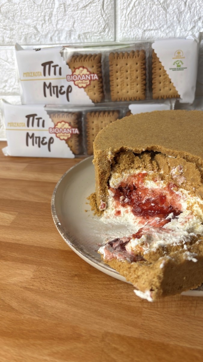 Spread half of the cream mixture over the biscuit base, then add the strawberry jam. Cover with the remaining cream and refrigerate for 1 hour.